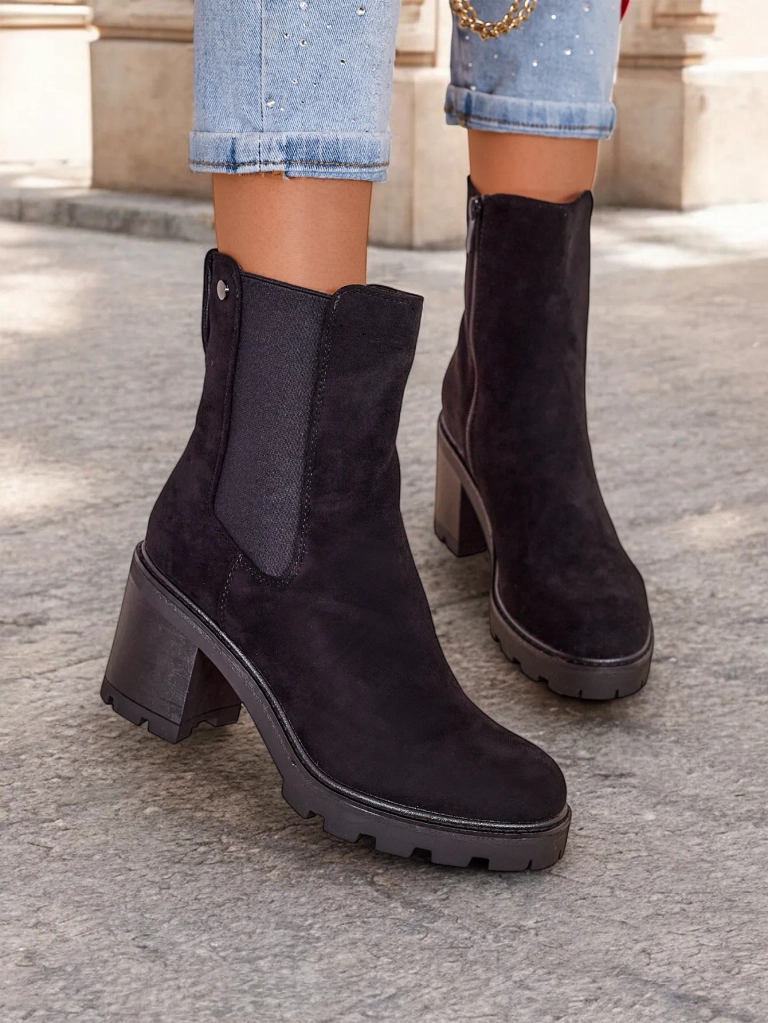 - Стильні жіночі щиколотки - ідеальне рішення для холодних днів. Верх з еко-замші, застібається на блискавку і відбивається хутром. Модель на шпильці з круглим носком. Прекрасний додаток до вашого повсякденного гардеробу!