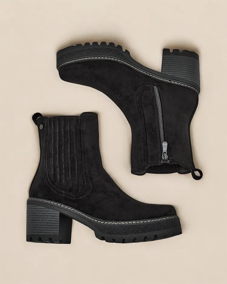 - Стильні жіночі чоботи до щиколотки - ідеальне рішення для холодних днів. Верх виготовлений з еко-замші, застібається на блискавку, всередині є хутрова підкладка. Модель на поту і з круглим носком. Відмінний доповнення до вашого кежуал гардеробу!