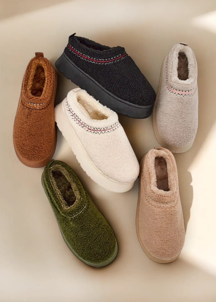 - Великі жіночі зимові чоботи у стилі чоботів на платформі. Верх виготовлений з тканини, схожої на хутро, підкладений хутром всередині. Ідеальна основа для зими!