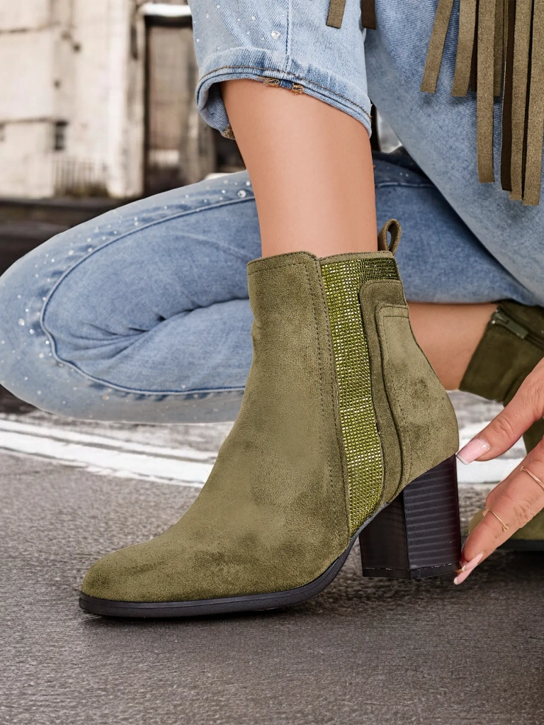 - ботінки на підборі відмінне рішення для холодних днів. Верх із штучної шкіри фіксується на блискавці, всередині штучна шкіра. Модель на підборі, з круглим носком. Відмінний додаток до вашого повсякденного гардеробу!