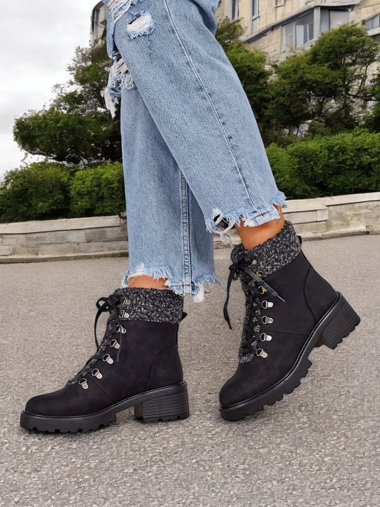 - Ніжно утеплені жіночі черевики-трапери, виготовлені з еко-шкіри. Модель має шнурований верх. Спеціальне взуття для поганої погоди!