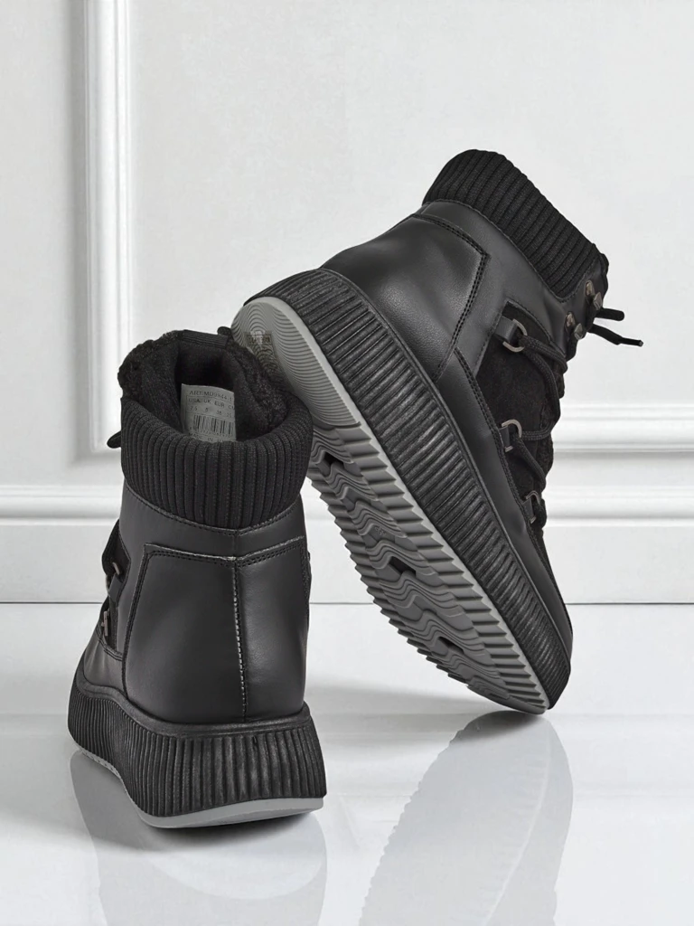 - Вічні жіночі сніжні чоботи з товстою підошвою. Верх виготовлений з еко-шкіри. Зсередини обшитий хутром, шнуровані взуття. Ідеально підходять для холодних сезонів!