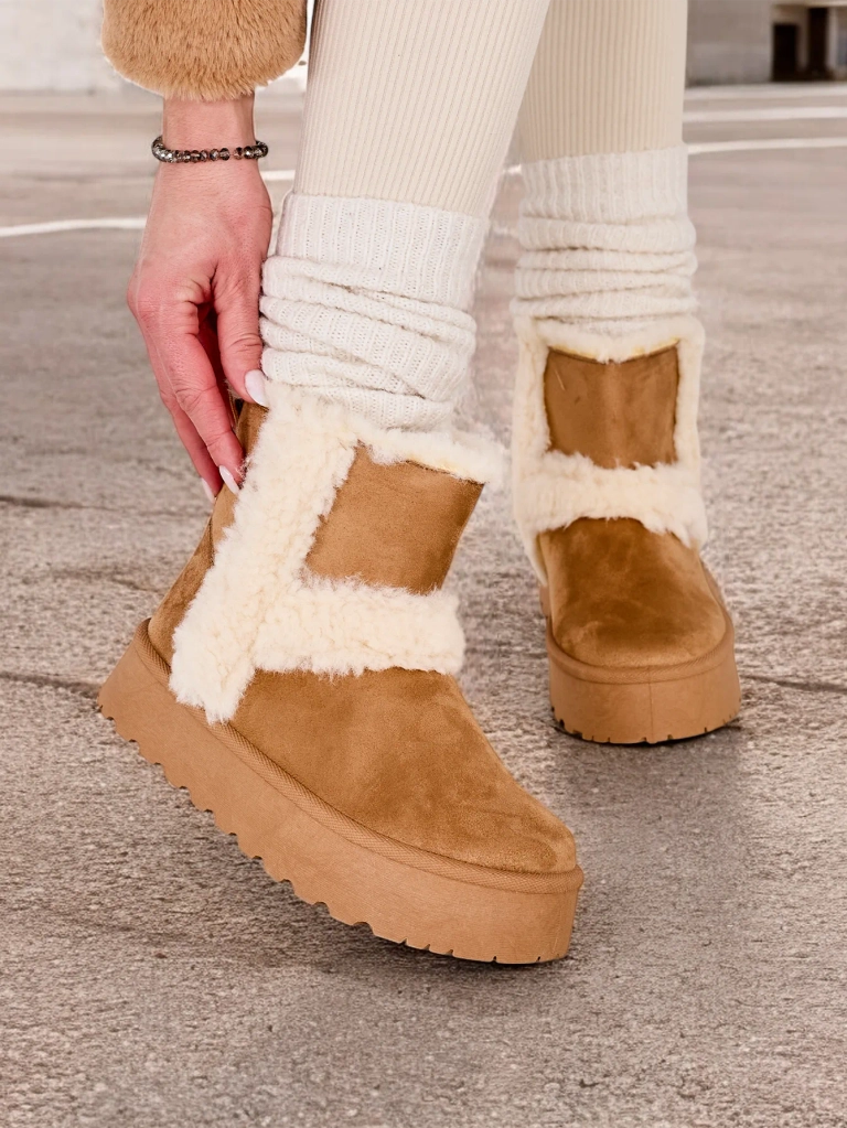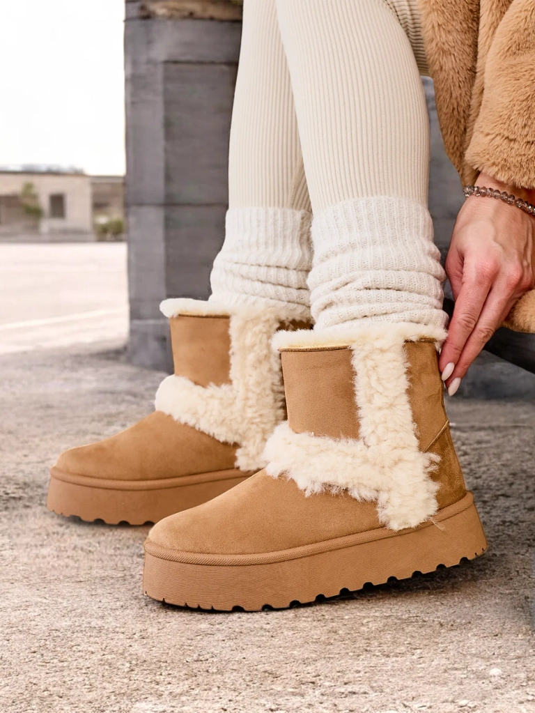 - Жіночі снігові чоботи з характером, виготовлені з комбінації еко-шкіри та зручної штучної хутра. Усередині хутра, взуття має вставний вал. Ідеально підходить для зими!