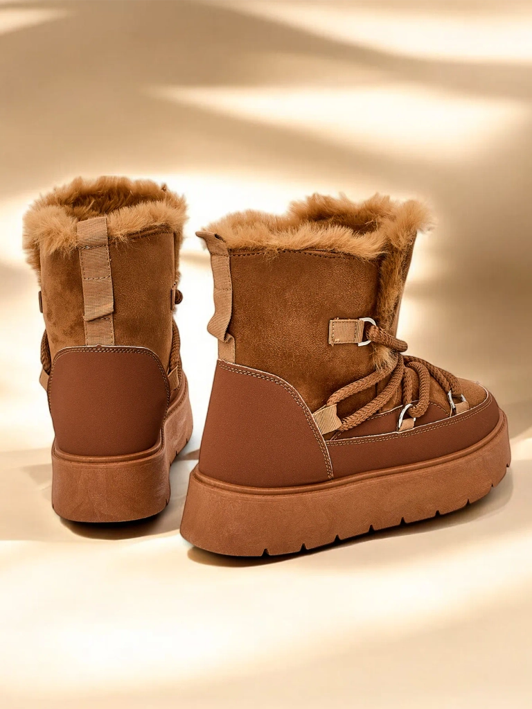 - Жіночі чоботи з верхом з замші еко-шкіри. Підкладка з приємного хутра всередині, чоботи на шнурках. Ідеально підходить для зими!