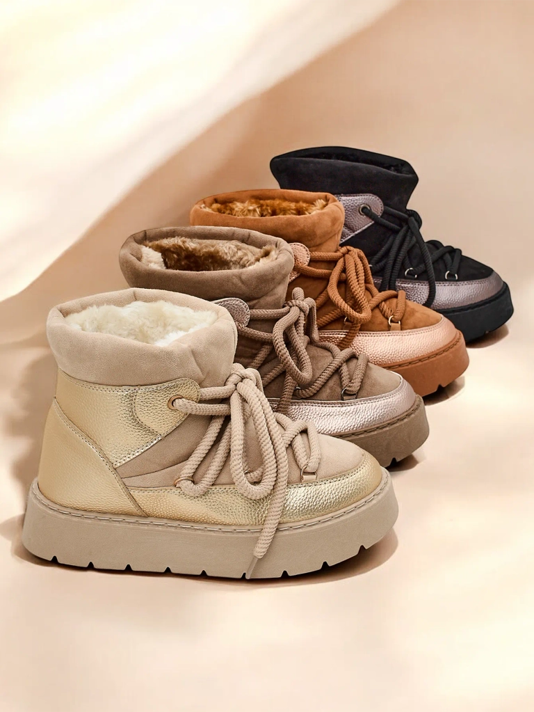 - Zhinochi snihovi choboti z varrstvom, vyhotovleni z kombinatsii ekovilthy ta ekosuka. Usiuvannya priromne valu, slip-on i nadychne choboti z shnurovkoiu. Ideálni dlia zymy!