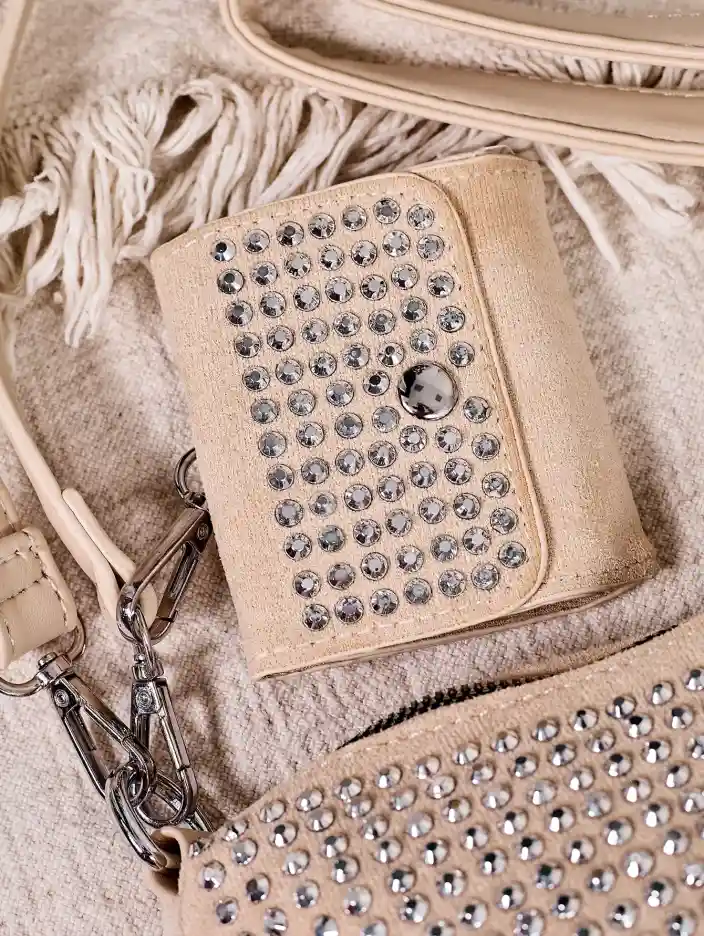 - Елегантна невелика жіноча сумочка, прикрашена шипами. Модель з застібкою на блискавці, має 1 відділення та 2 кишені. Сумка має два витяжні ремінці та декоративний гаманчик. Ідеально підходить для офіційних виходів!