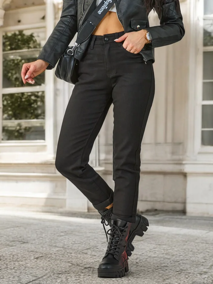 - Стильні жіночі джинси-матусі з бавовняного матеріалу. Модель має високий пояс, застібку на ґудзик та молнію, а також 4 кишені. Обов'язкова річ в кожному гардеробі!