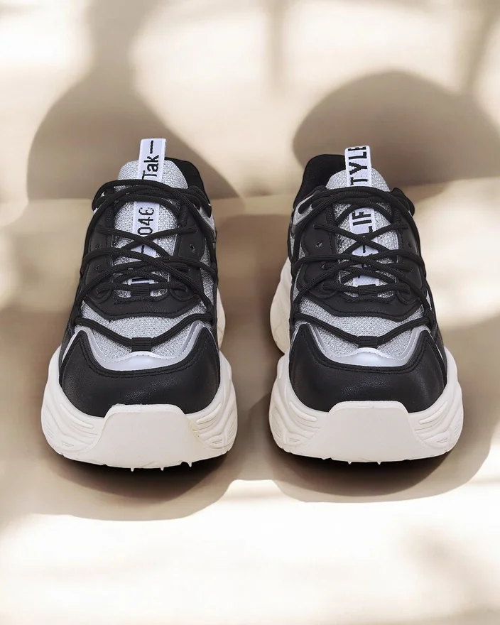 • Спортивне взуття жіночі в стилі кросівок з товстою підошвою. Виготовлені з еко-шкіри з блискучими вставками. Тканинна устілка. Чудове доповнення до ваших повсякденних стильних образів!