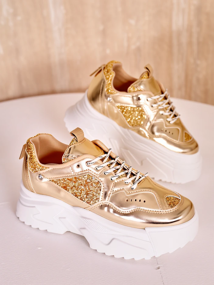 • Жіночі спортивні тапочки у стилі кросівок з плоскою підошвою. Виготовлені з екокожі з блискучими акцентами. Вкладиш - екокожа. Прекрасне доповнення до ваших щоденних повсякденних образів!