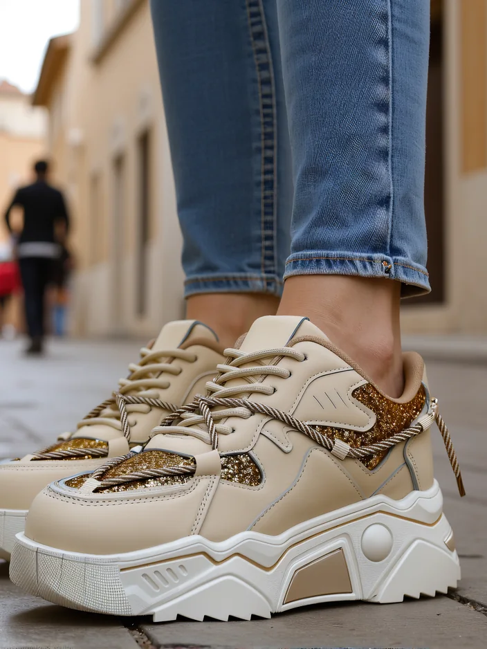 - Жіночі спортивні черевики в стилі кросівок з товстою підошвою. Виготовлені з еко-шкіри та тканини, а також з еко-шкіряною устілкою. Супер додаток до ваших повсякденних casual образів!