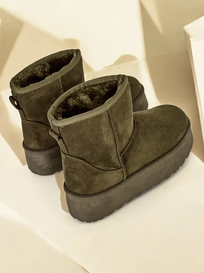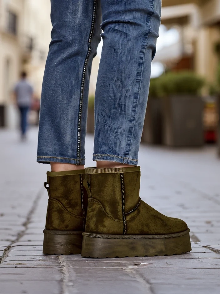 - Чудові зимові черевики на платформі для жінок. Верх виконаний з штучної замші, а всередині оброблений хутром. Ідеальна основа для зими!