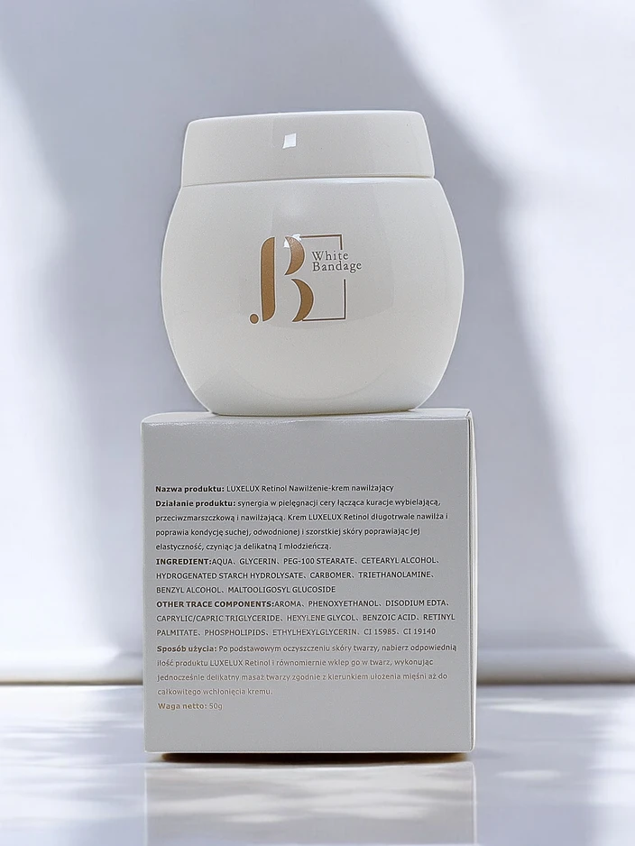 - LUXELUX Ретинолове зволоження - крем, який поєднує в собі освітлюючі, проти зморшкові та зволожуючі властивості. Забезпечує тривале зволоження, покращує еластичність та стан сухої і грубої шкіри, роблячи її м’якою та молодшою.