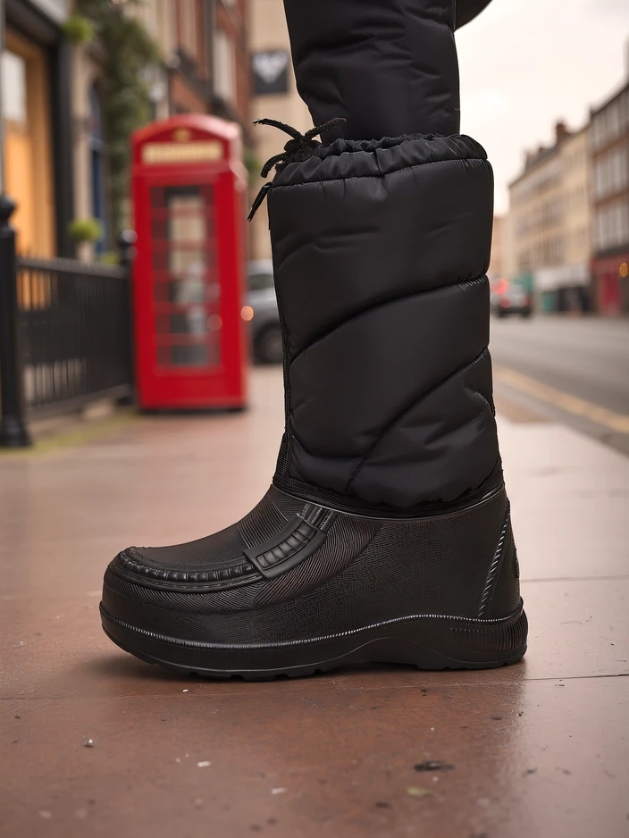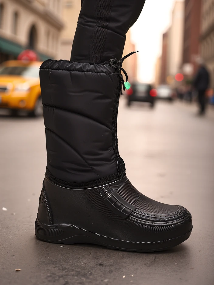 - Чудові зимові снігові чоботи для жінок з плоским каблуком. Верх виконаний з гумової основи та тканини, що нагадує олійне полотно, з теплого підкладкою. Застібаються на блискавку посередині. Ідеальна основа для зими!