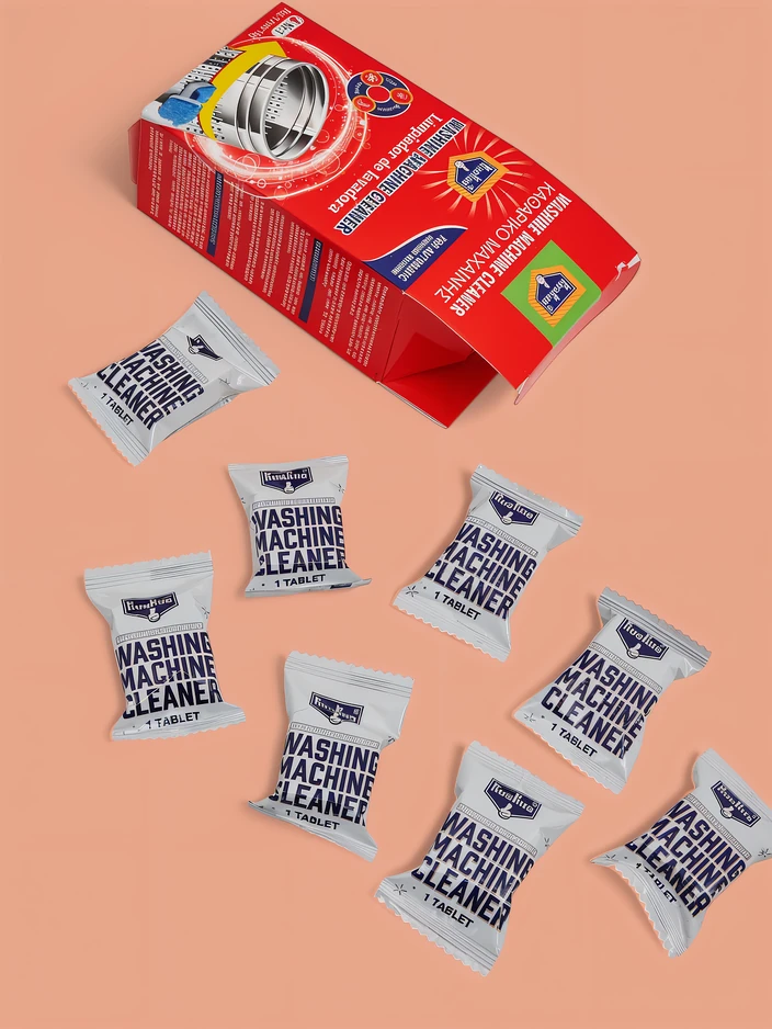 • Таблетки для очищення пральної машини ефективно видаляють відкладення, бруд і неприємні запахи, забезпечуючи тривалу роботу пристрою. Регулярне використання допомагає підтримувати пральну машину в чистоті, запобігає утворенню вапняного нальоту та покращує