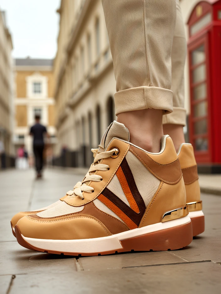 • Комфортні жіночі спортивні черевики з прихованим підйомом, виготовлені з екошкіри. Модель на шнурівці, текстильна устілка. Еластичний верх легко адаптується до ноги. Супер стильний аксесуар!