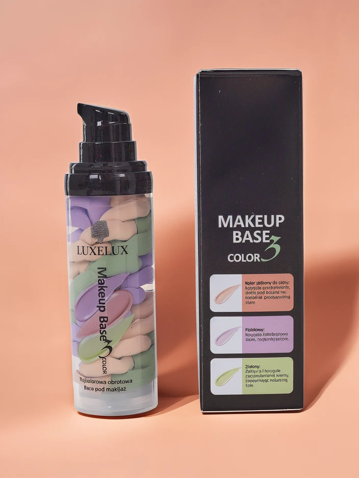 - Триколірна основа для макіяжу ефективно маскує недоліки! Рожевий освітлює шкіру, усуваючи тьмяність, зелений маскує почервоніння, акне та розширені пори, а фіолетовий нейтралізує жовті відтінки.