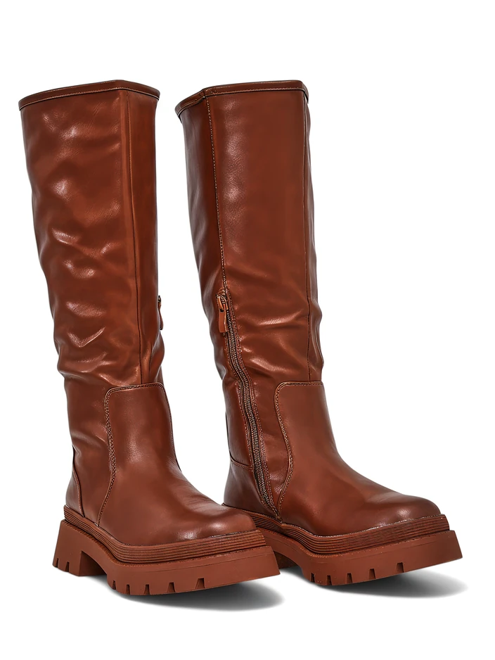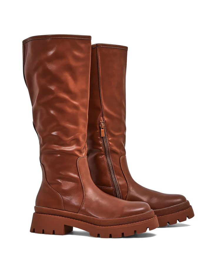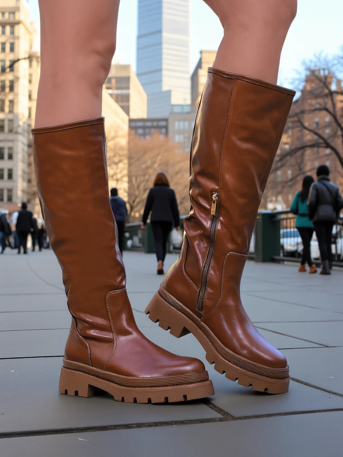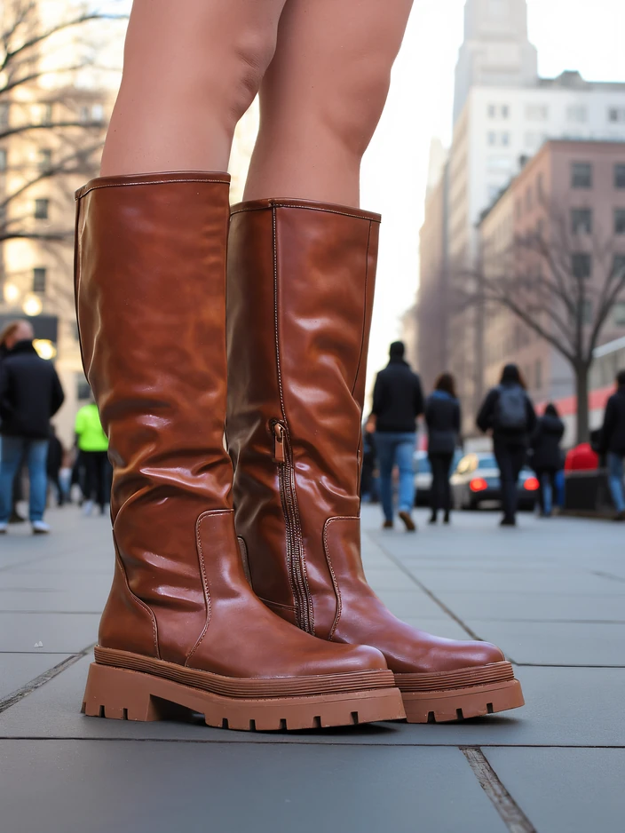 - Високі жіночі чоботи з синтетичної шкіри на платформі. Вкладка з текстильної устілки. Модель застібається на блискавку. Елегантно та стильно!