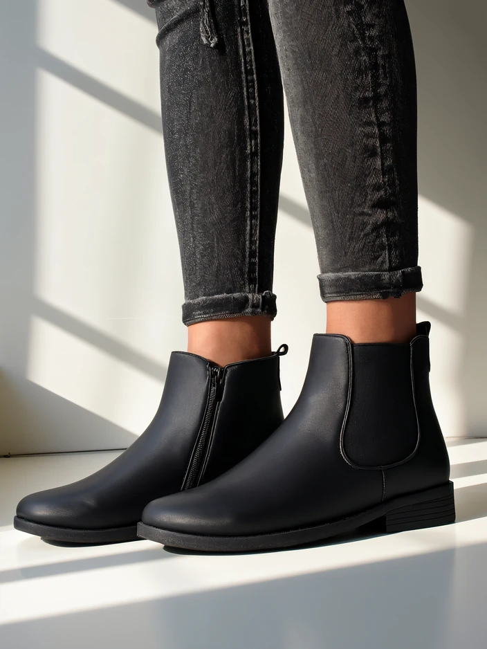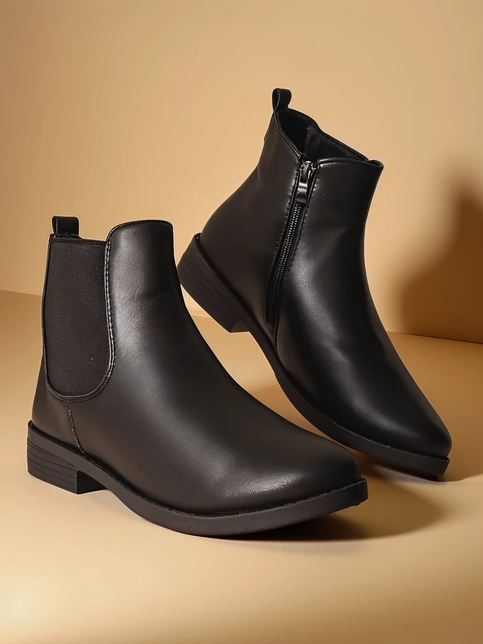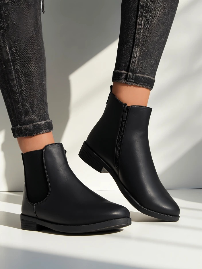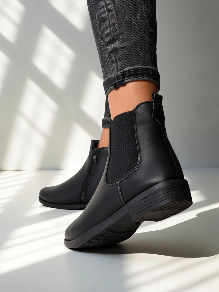 Ці елегантні черевики челсі характеризуються класичним дизайном і простотою, що робить їх відмінним вибором для різних випадків. Виконані з високоякісного штучного шкіри, вони пропонують міцність і легкість у догляді. Гнучкі бічні вставки з матеріалу забезпечують зручну посадку, а солідна підошва гарантує впевненість у кроках. Ці черевики ідеальні для офісу, на зустрічі з друзями або для вихідних. Легко надягаються завдяки петельці ззаду.