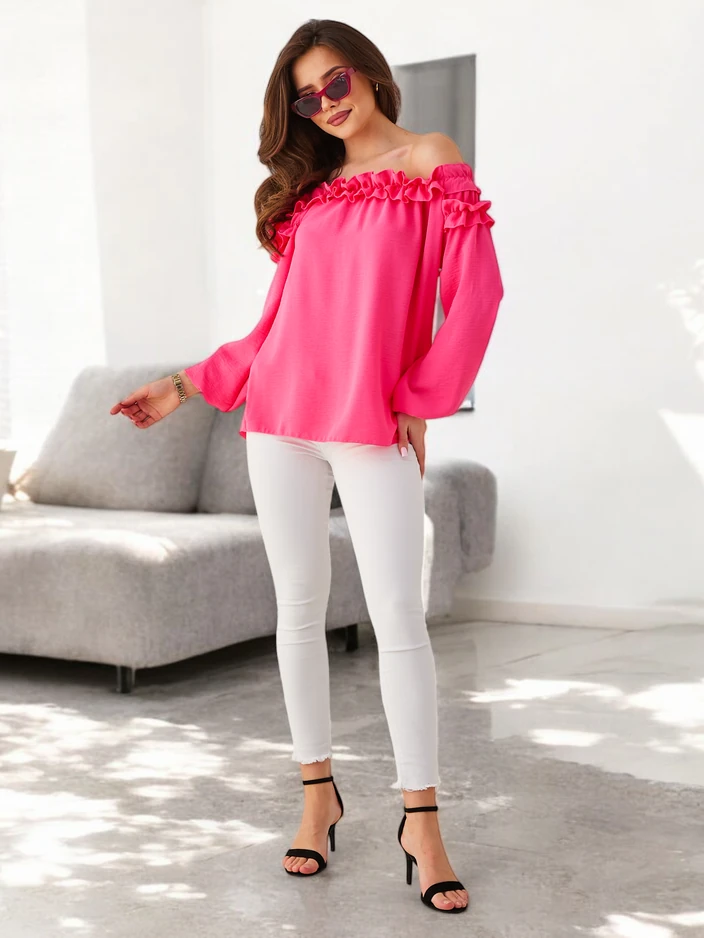 - Іспанська блузка з рюшею на горловині є елегантним і жіночним варіантом для будь-якого випадку. З еластичною горловиною та довгими рукавами вона ідеально підкреслює силует, забезпечуючи комфорт і свободу рухів. Тонка рюша додає легкості та чарівності!