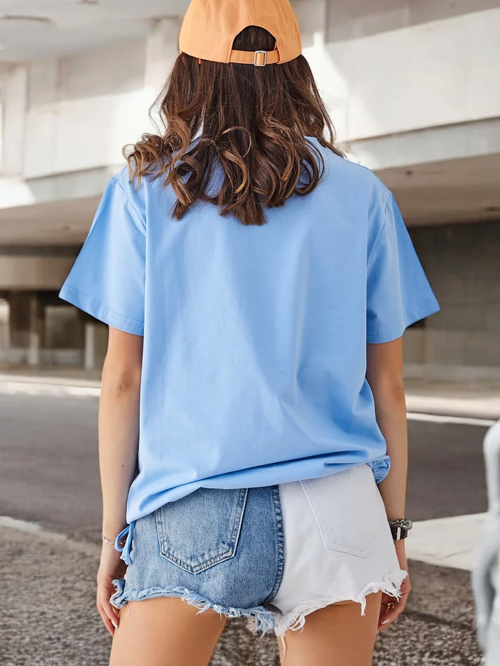 • Оригінальна жіноча блузка з круглим вирізом, виготовлена з м'якої та приємної на дотик тканини. Уся річ прикрашена делікатним написом, а короткий рукав надає легкості. Відмінний вибір для створення модних і стильних образів!