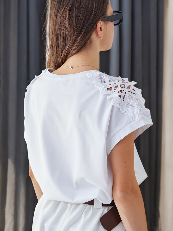 Royalfashion Жіноча бавовняна футболка з мереживними рукавами