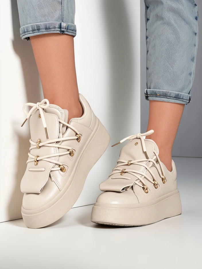 - Спортивні жіночі кросівки на товстій підошві. Верх на шнурівці, виготовлений з екологічно чистої шкіри. Внутрішня частина з приємної тканини. Модель має декоративний язичок. Ідеально підходять для щоденного використання!