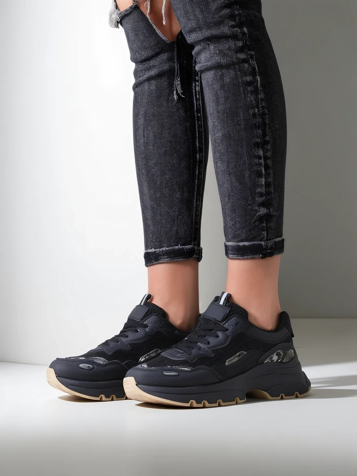 - Стильні жіночі кросівки, які поєднують комфорт з модним дизайном. Модель виготовлена з комбінації еко-шкіри та тканини, а також з текстильною устілкою. Ідеально підходять для щоденного носіння, забезпечуючи комфорт і легкість, підходять для багатьох повся