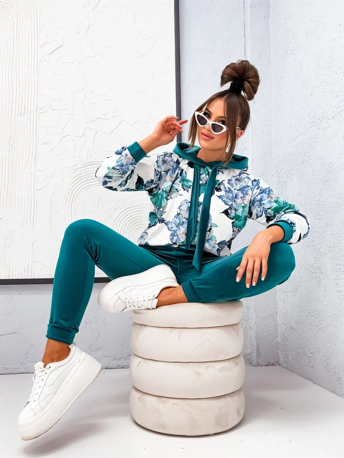 • Жіночий набір, схожий на оксамит, виготовлений з приємного котонового матеріалу. Пульовер-худі без застібки з капюшоном. Довгі штани з еластичним поясом та 2 кишенями. Виглядайте стильно в цьому чудовому наборі!