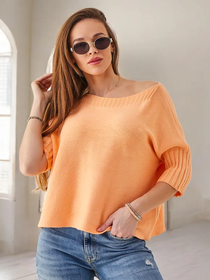 - Цей привабливий жіночий светр — ідеальний вибір для прохолодних днів. З короткими рукавами та круглим вирізом він забезпечує комфорт і відчуття стилю!