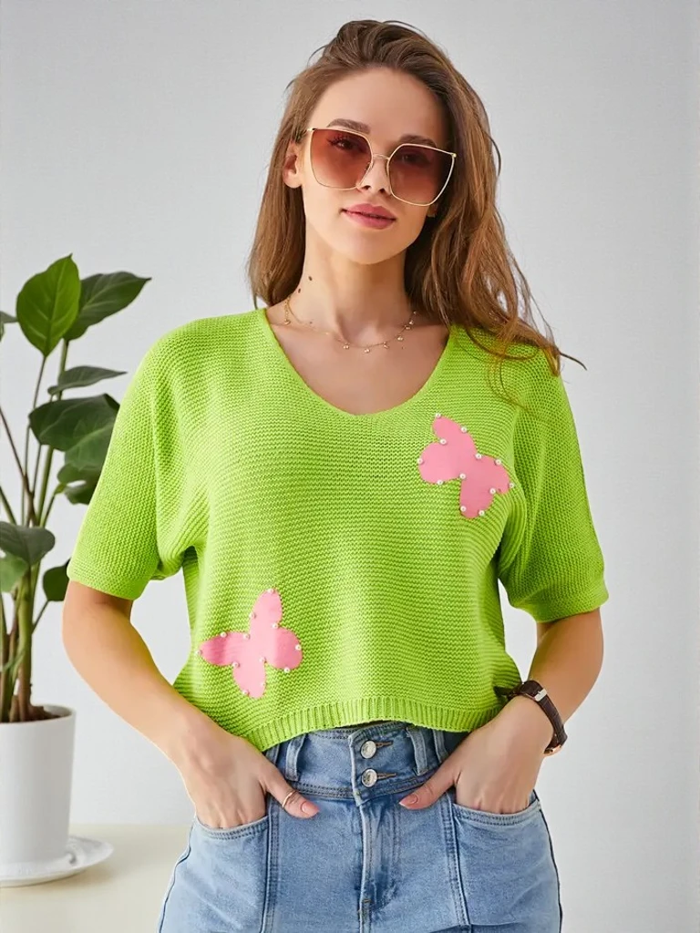 Royalfashion Жіночий бавовняний короткий светр з метеликами