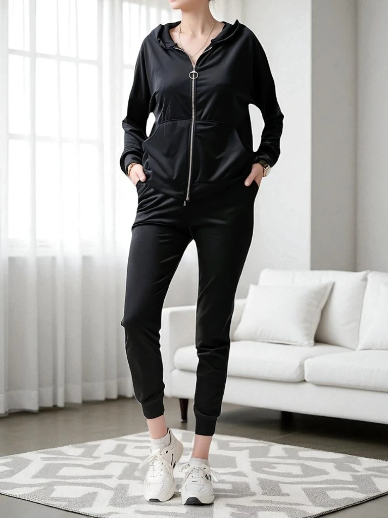 - Жіночий комплект а-ля оксамит, виготовлений з приємного матеріалу. Світшот на блискавці з капюшоном. Довгі штани з еластичною талією, 2 кишені. Відчуйте стиль у цьому чудовому комплекті!