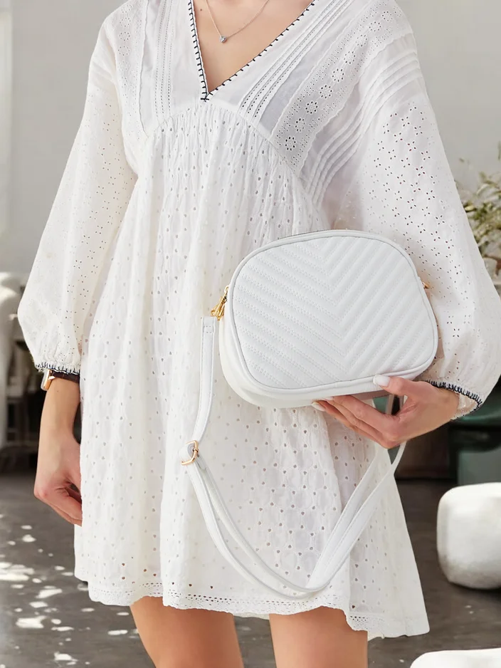 - Women's oval handbag with zipper, made of ecological leather. The model has 3 compartments and an external pocket. Additionally, there is a detachable, adjustable strap. Perfect for everyday use!