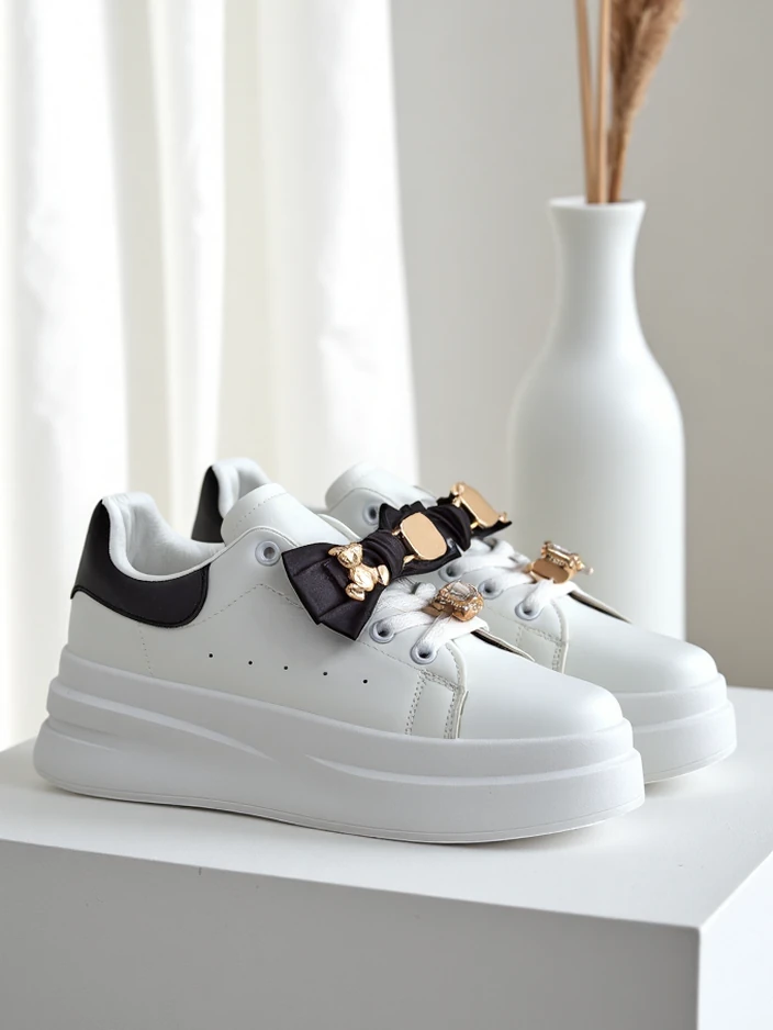 • Жіночі кросівки з еко-шкіри та текстильною устілкою на платформі, які поєднують комфорт із стильним дизайном. Ідеальні для повсякденного носіння, вони забезпечують легкість і комфорт, тоді як стриманий дизайн додає елегантності будь-якому образу.