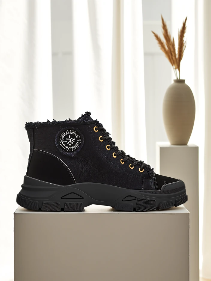 - Високі спортивні жіночі кросівки з текстильного матеріалу. Модель на зручній підошві. Верх зав'язується. Ідеально підходять для створення повсякденних образів!