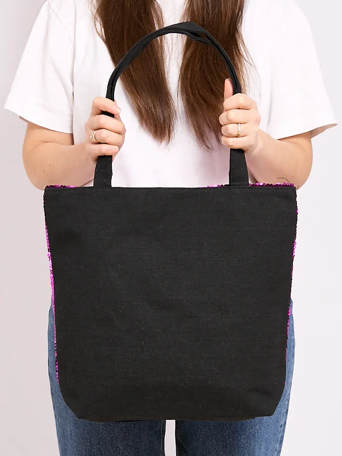 - Дуже просторна жіноча сумка, виготовлена з матеріалу, оздобленого паєтками. Модель застібається на блискавку і має 1 великий відділ та 2 ручки. Ідеальний вибір для щоденного використання або пляжу!