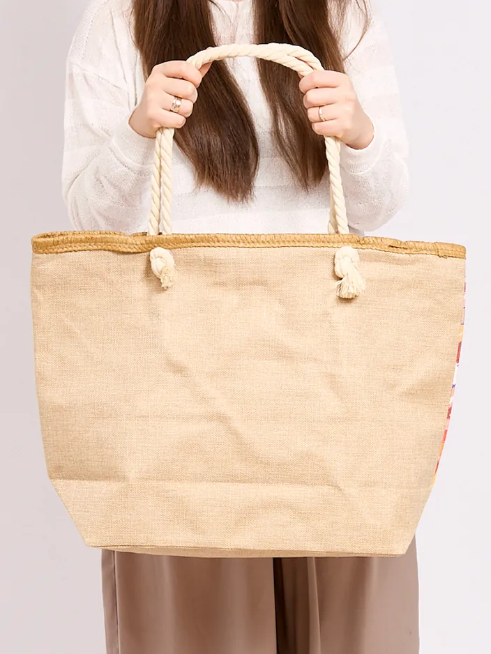 - Стильна тканинна сумка, оформлена принтом. Сумка має довші ручки, закривається на блискавку і має одну кишеню всередині. Вона ідеально підходить для пляжу!