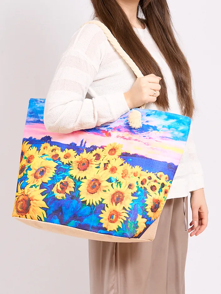 - Стильна сумка з тканини, оформлена принтом. Сумка з довшими ручками, на блискавці та з 1 кишенею всередині. Ідеально підходить для пляжу!