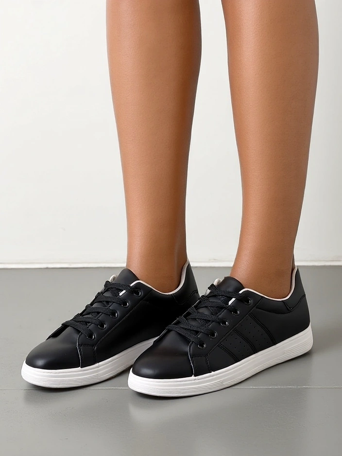 • Стильні жіночі спортивні кросівки на шнурівці на плоскій підошві. Верх виконаний з екологічної шкіри. Всередині тканинна устілка. Зручне взуття на кожен день!