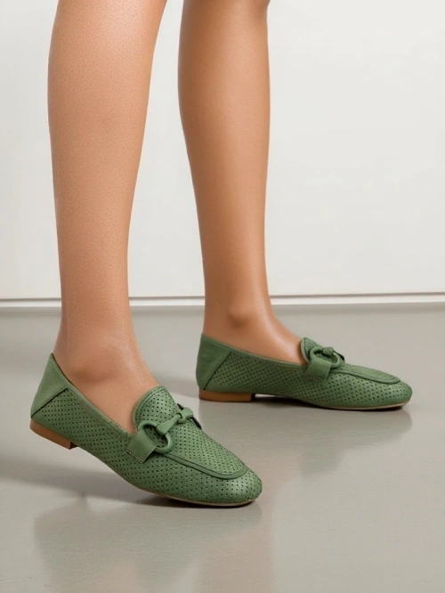 - Перфоровані жіночі лофери на плоскій підошві. Модель виготовлена з замінника замші з еко-шкіряною підкладкою. Ідеальне доповнення до повсякденних образів!