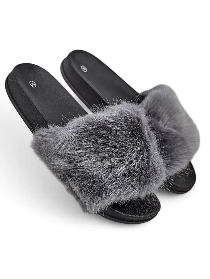- Чарівні жіночі тапочки з гумового матеріалу. На ремінці модель має декоративне хутро. Підходить для багатьох оригінальних образів.ПРИМІТКА: модель підходить для людей з вузькою стопою.