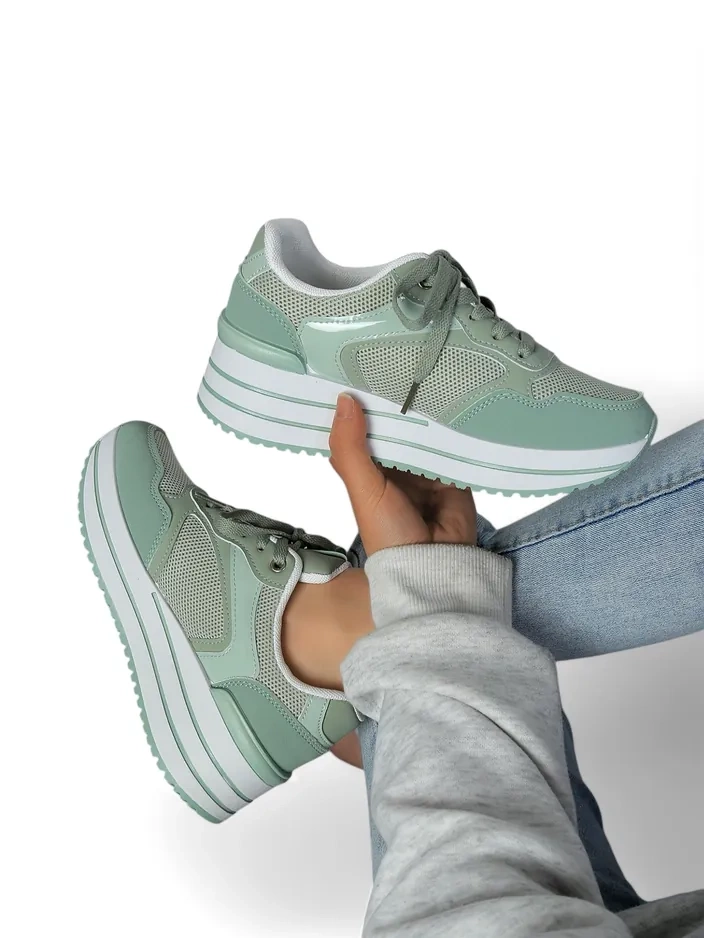- Жіночі кросівки з еко-шкіри та тканини на платформі. Модель на шнурівці, має текстильну устілку. Ідеально підходять для створення стильних образів!