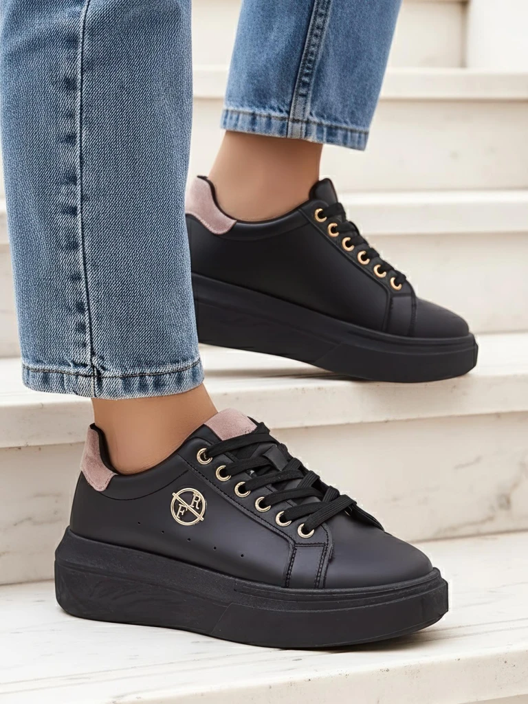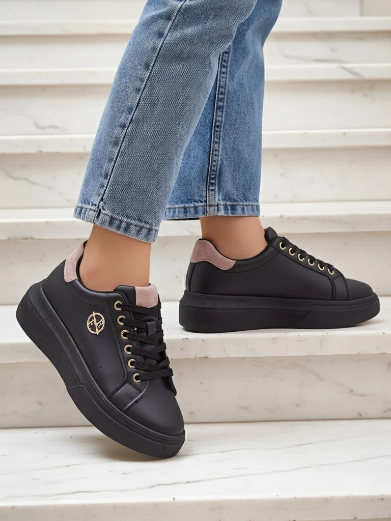 Відкрийте для себе снікерси Erato Nero – унікальне жіноче взуття на платформі, ідеальне на весну та для кожної жінки, яка цінує комфорт і стиль. Виготовлені з високоякісної екологічної шкіри, поєднаної з тканинною, дихаючою устілкою, вони гарантують комфорт протягом усього дня. Екологічна шкіра – це сучасний матеріал, який імітує натуральну шкіру, водночас поважаючи тварин. Процес виробництва матеріалу відповідає суворим нормам безпеки та екології, що підтверджується міжнародними галузевими сертифікатами (наприклад, OEKO-TEX, якщо доступні).Взуття Erato Nero вирізняється класичним чорним кольором, золотими деталями на шнурівці та логотипом, які додають елегантності кожній стилізації. Платформа висотою 5 см робить фігуру стрункішою, забезпечуючи стабільність і зручність завдяки відповідному профілю підошви та амортизуючій внутрішній частині. Новий стан взуття гарантує свіжість і найвищу якість виготовлення.Переваги носіння снікерсів Erato Nero – це не тільки зручність, але й універсальність – вони чудово підійдуть як для повсякденних, так і для більш елегантних образів. Делікатна тканина устілки захищає стопу від натирань, а легкість конструкції забезпечує комфорт під час тривалих прогулянок.3 ідеї для стилізації: 1. Casual look: комплект з джинсами, білою футболкою та курткою-бомбером – класика для міської прогулянки.2. Streetwear: поєднайте з широкими штанами карго та коротким топом – модний, молодіжний аутфіт.3. Елегантність на розслабленості: снікерси з чорною сукнею міді та оверсайз піджаком – стиль для офісу або зустрічі з друзями.Догляд: Екологічну шкіру чистіть вологою, м’якою тканиною або спеціальними препаратами, призначеними для цього типу матеріалу. Уникайте тривалого контакту з водою та прямої дії сонячних променів, щоб не допустити знебарвлення. Зберігайте взуття в провітрюваному місці, найкраще в оригінальній коробці або на полиці.Тренди: Снікерси на високій платформі – це зараз один з найсильніших трендів у вуличній моді. Завдяки універсальному кольору та сучасній лінії Erato Nero чудово вписуються в актуальний модний клімат, дозволяючи вільно міксувати їх у багатьох весняних стилізаціях.