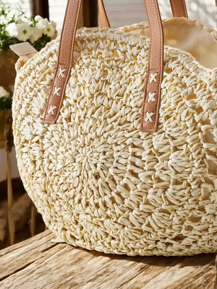 Royalfashion Велика овальна солом'яна сумка для жінок