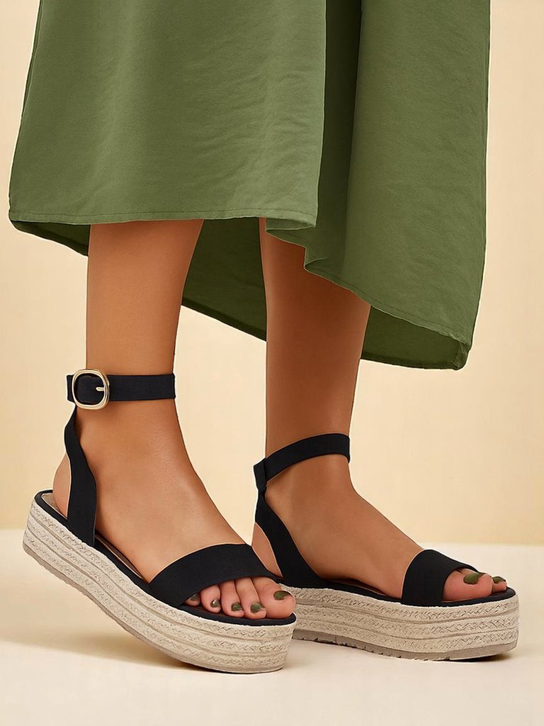 • жіночі платформні сандалі. Сандалі виготовлені з еко-самту і мають еко-шкіряну устілку. Взуття оснащене застібкою на пряжку і має декоративну підошву з джутового каната. Ідеально підходять для створення модних літніх образів!