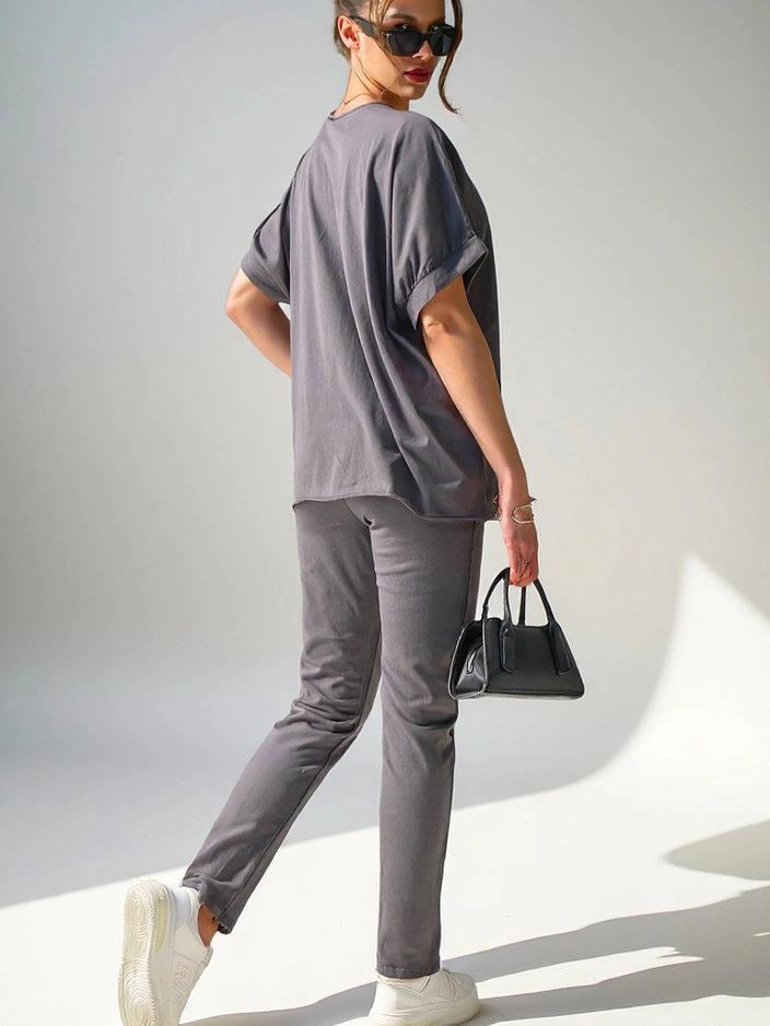Royalfashion Жіночий комплект з бавовни з коротким рукавом та прямими штанами