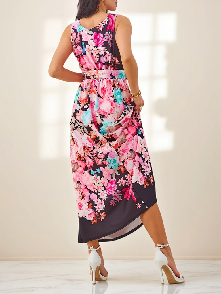 Royalfashion Жіноча міді-сукня з віскози, з бретелями та поясом в різних квіткових візерунках