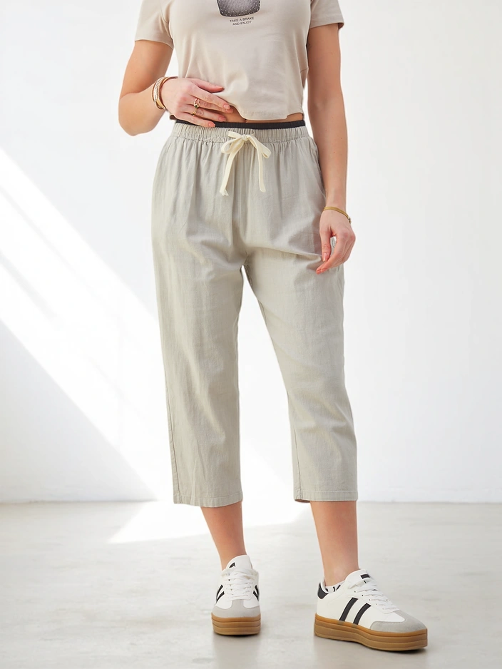 Royalfashion Котонові широкі жіночі штани з зав'язкою