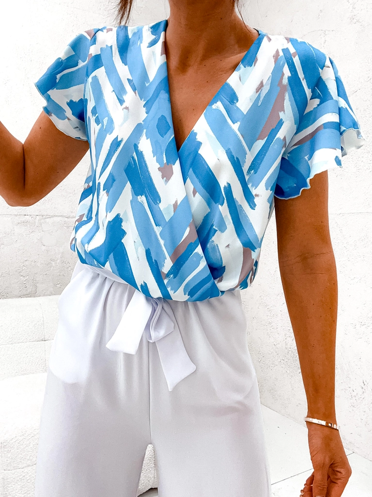 • Чудовий жіночий комбінезон з короткими рукавами, V-подібним вирізом та еластичним поясом. Модель має широкі, довгі штанини. Додатково включений пояс. ЗАУВАЖЕННЯ: Точність вимірювання (+/-) 1 см.