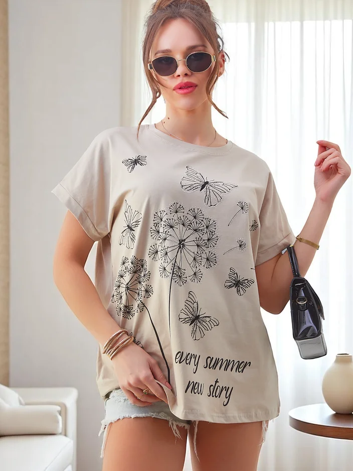 Royalfashion Жіноча бавовняна футболка з кульбабами та метеликом