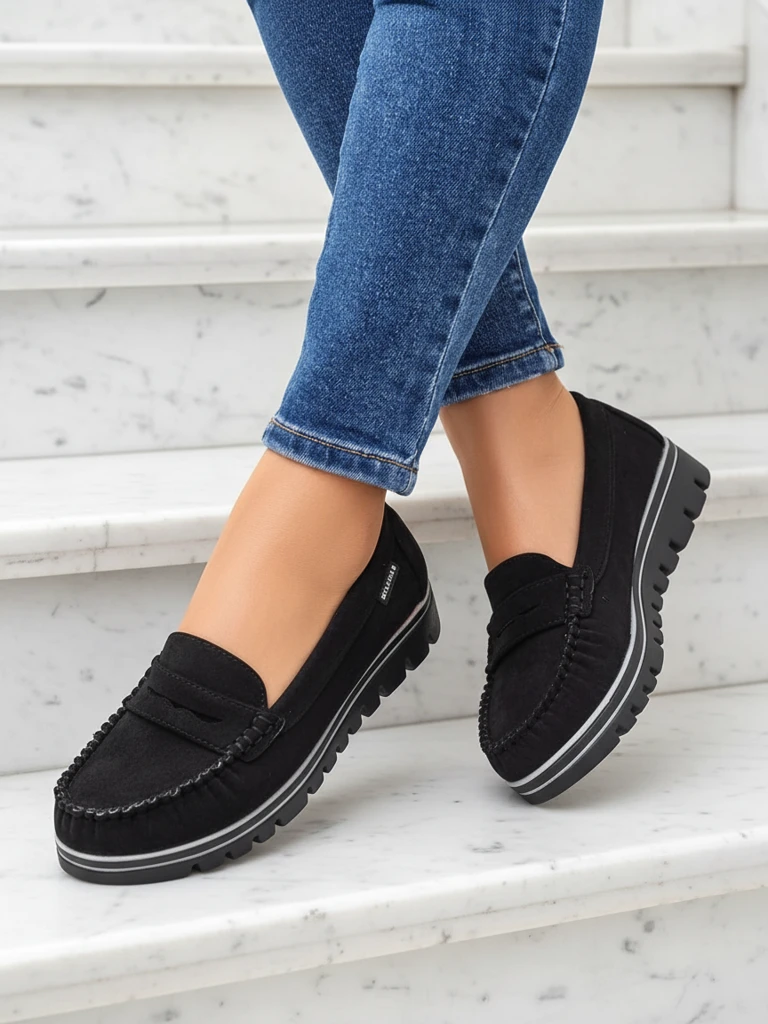 Відкрийте для себе нові чорні мокасини Sabella, які поєднують елегантність з винятковим комфортом. Виготовлені з високоякісної екологічної замшевої шкіри, ці черевики виглядають не тільки стильно, але й піклуються про навколишнє середовище. Натуральна шкіра устілки забезпечує відмінну вентиляцію та м'якість, що робить їх носіння протягом усього дня справжнім задоволенням. Завдяки плоскому каблуку висотою 3,5 см, ці мокасини ідеально підходять як для роботи, так і для casual зустрічей з друзями. Особливості: - Екологічна замшева шкіра, гофрована підошва для кращого зчеплення - Легко взувати - відсутність складних застібок, що робить їх зручними на кожен день. Мокасини Sabella чудово поєднуються з різними стилізаціями. Ось кілька пропозицій: 1. Casual look: поєднайте мокасини з джинсами та футболкою, щоб отримати вільний стиль на кожен день. 2. Елегантна стилізація: поєднайте їх з класичною сукнею та легкою курткою на прохолодний день. 3. Міський шик: облягаючі чіноси та блейзер доповнять Ваш сучасний образ. Для збереження найвищої якості взуття рекомендується регулярно чистити його вологою ганчіркою та уникати контакту з водою. Мокасини не потребують складного догляду, проте варто зберігати їх у сухому місці, щоб зберегти їх оригінальну форму. Час на покупки! Оберіть зараз свої ідеальні мокасини Sabella та слідуйте за актуальними трендами моди, які поєднують комфорт з вишуканим стилем.